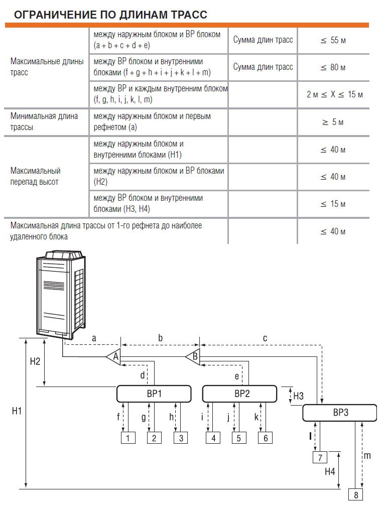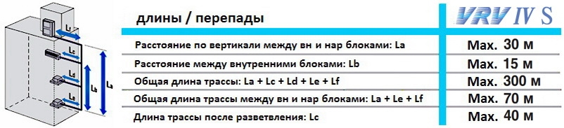 Насколько удалось собрать информации, у Fujitsu, например, это 3 метра для наружных блоков мощностью выше 5.