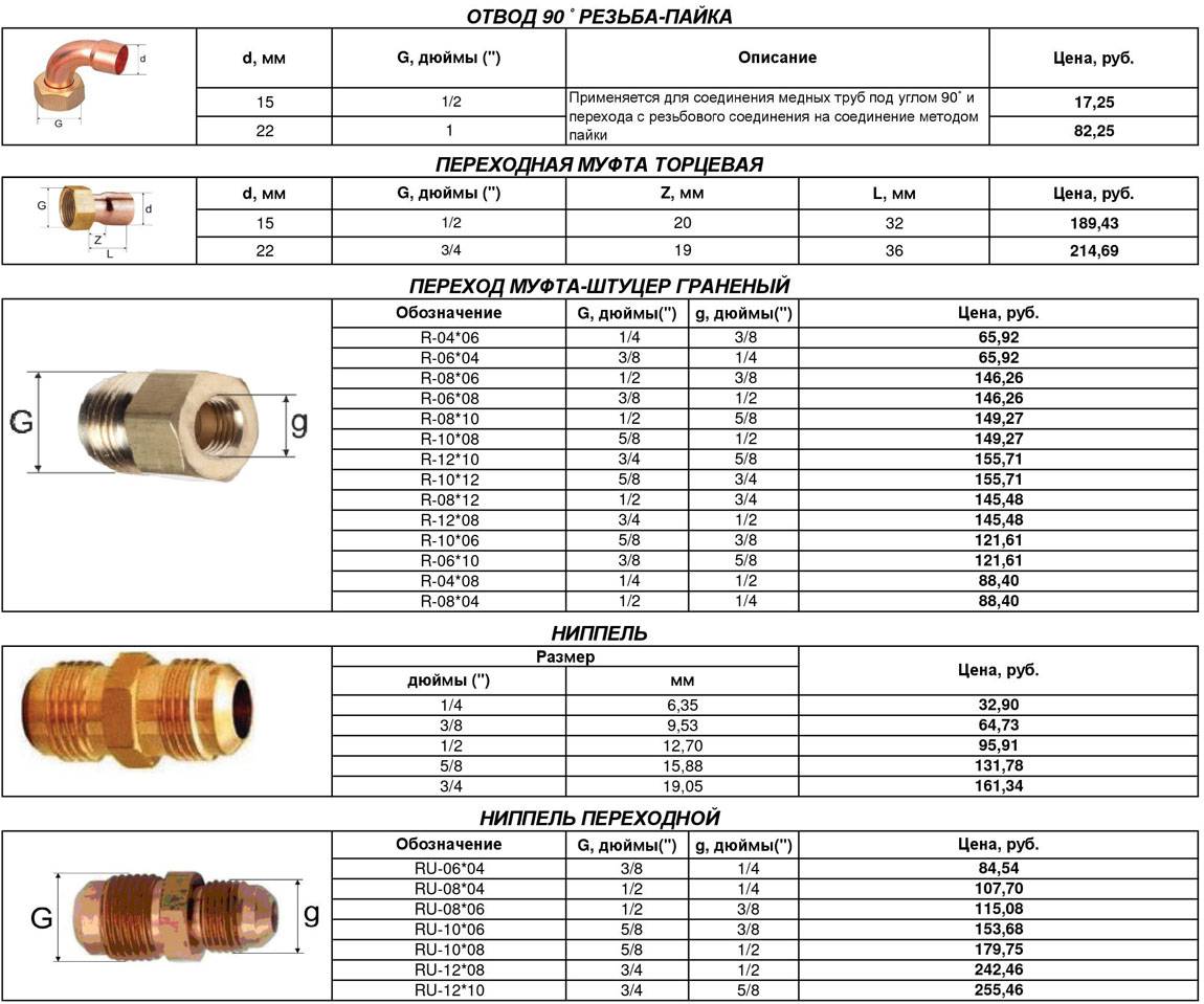 *Все таблицы на этой странице взяты из справочника по медным трубам, который можно получить в Ассоциации развития меди.