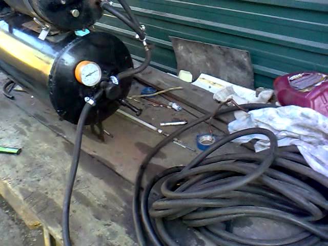Самодельное устройство лучше всего расположить под столом, на столе оставляют только нагнетающую и всасывающую трубку и манометр. Для удобства запуска агрегат снабжают педалью, посредством которой и осуществляется его включение.